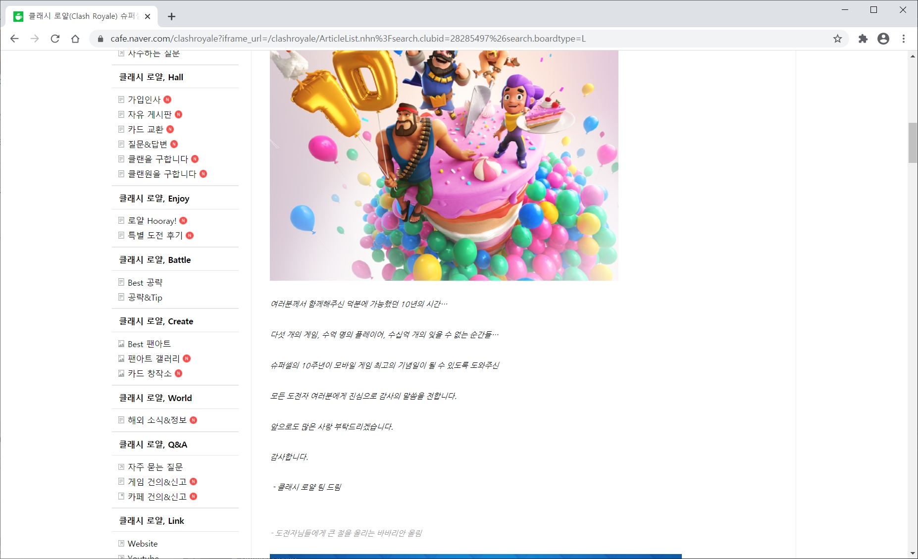 제가 하는 게임 클래시로얄의 공식카페입니다