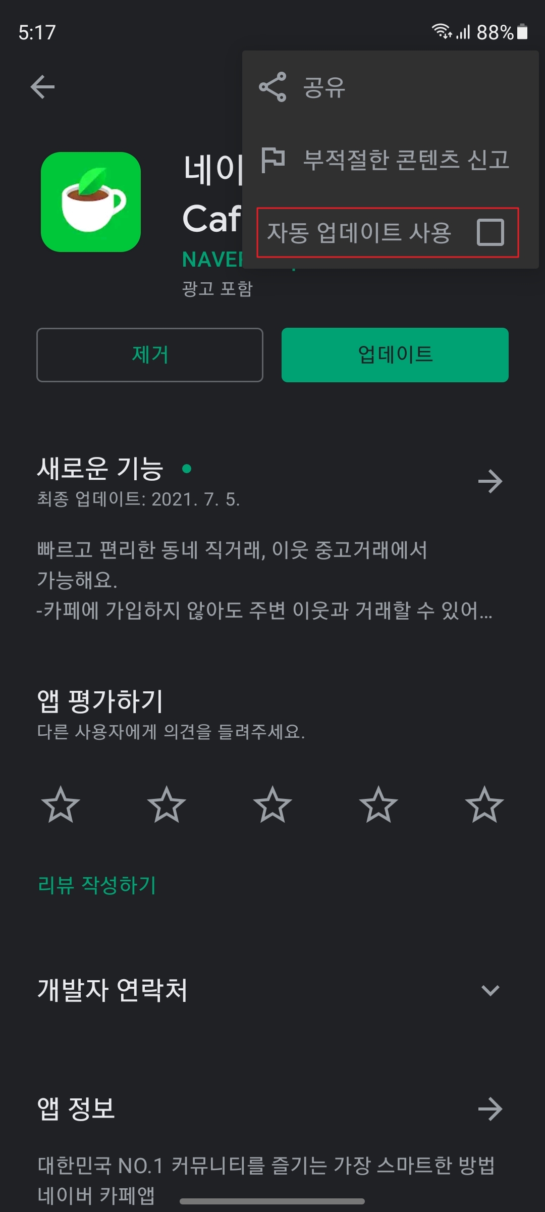 그렇지 않으면, 네이버 카페가 자동 업데이트가 되어 신버전으로 업데이트가 될 수 있습니다